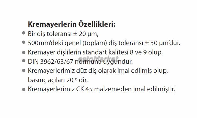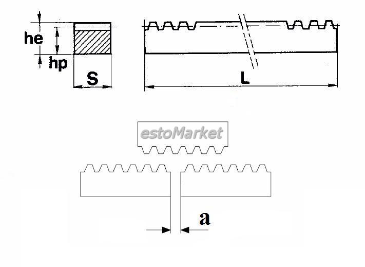 Modül=3, he x S= 30x30, L=2007,48mm, Diş Sayısı=213, Hatvesi=9,42mm, a=0,8mm, hp=27mm