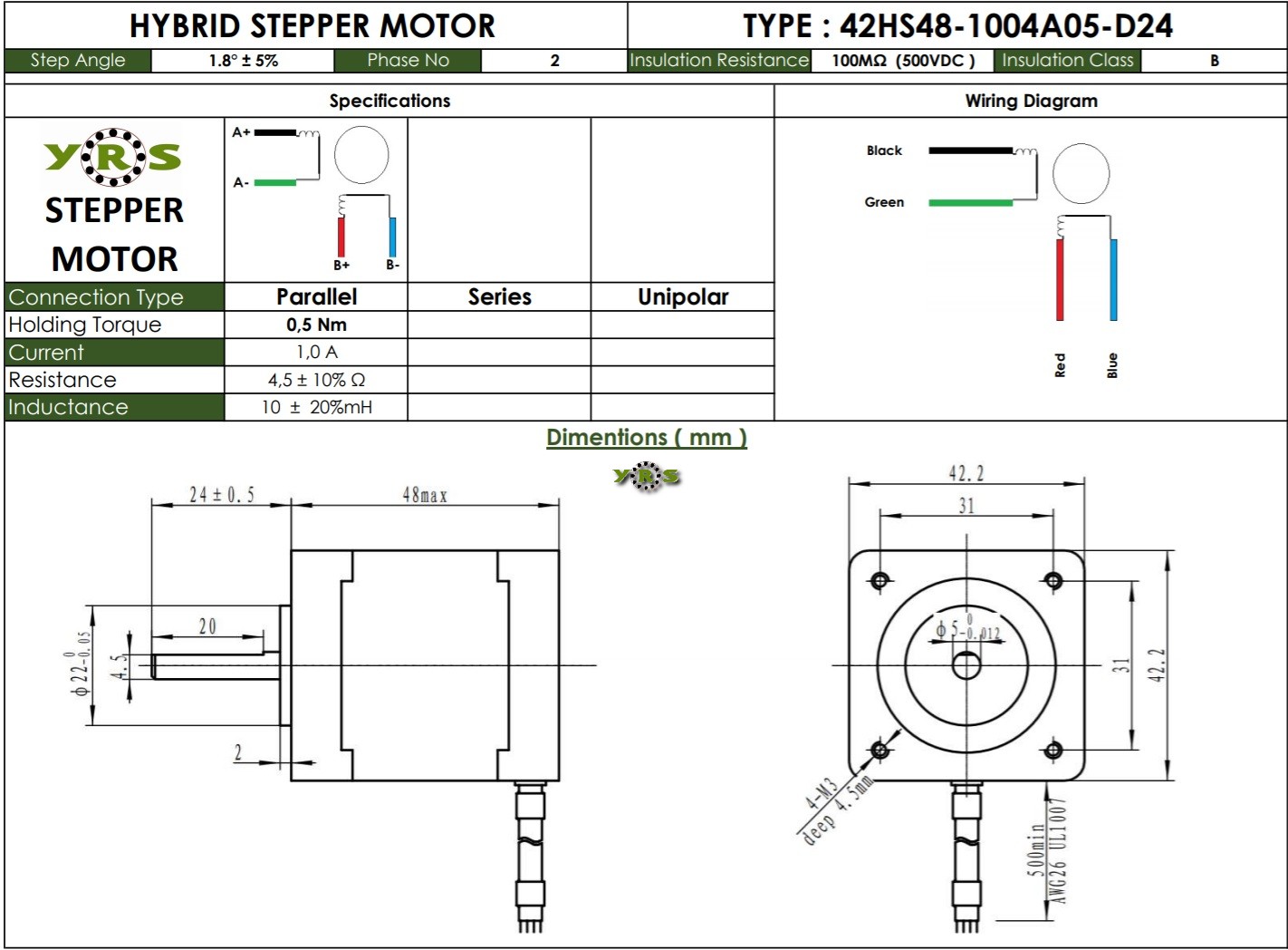 Nema 17 42HS48 Step Motor 0,49Nm