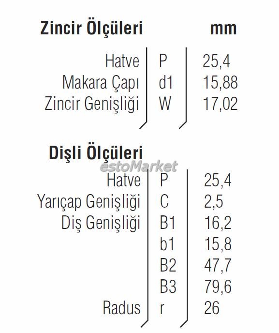 16B2 1 Çift Sıra 14 Diş Dişli