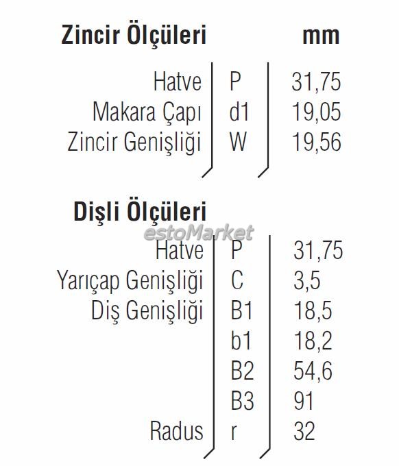 20B1 1 1/4 Tek Sıra 11 Diş Dişli