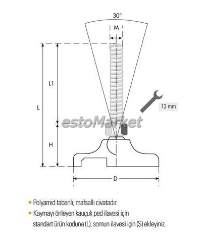 LEVEL EP80 1012 Mafsal Ayak Polyamid