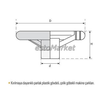 Çap D=100mm, H=40mm, Göbek Çapı=30mm, Kol Yuvası=M6