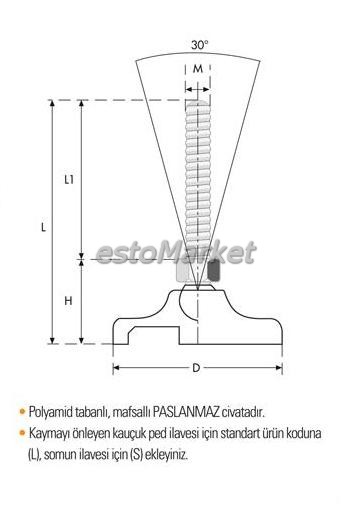 LEVEL EPX12 2016 Paslanmaz Civatalı Polyamid Ayak