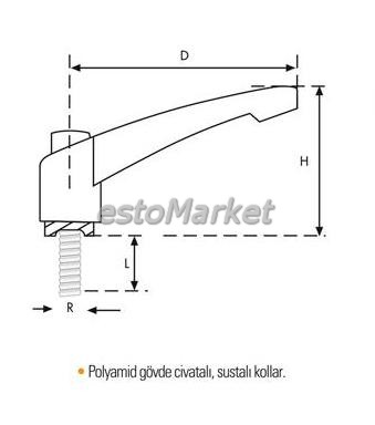 L=80mm, D=M8 , Civata Boyu=30mm, H=45mm